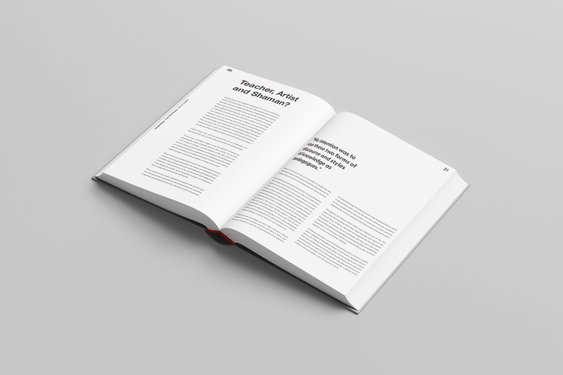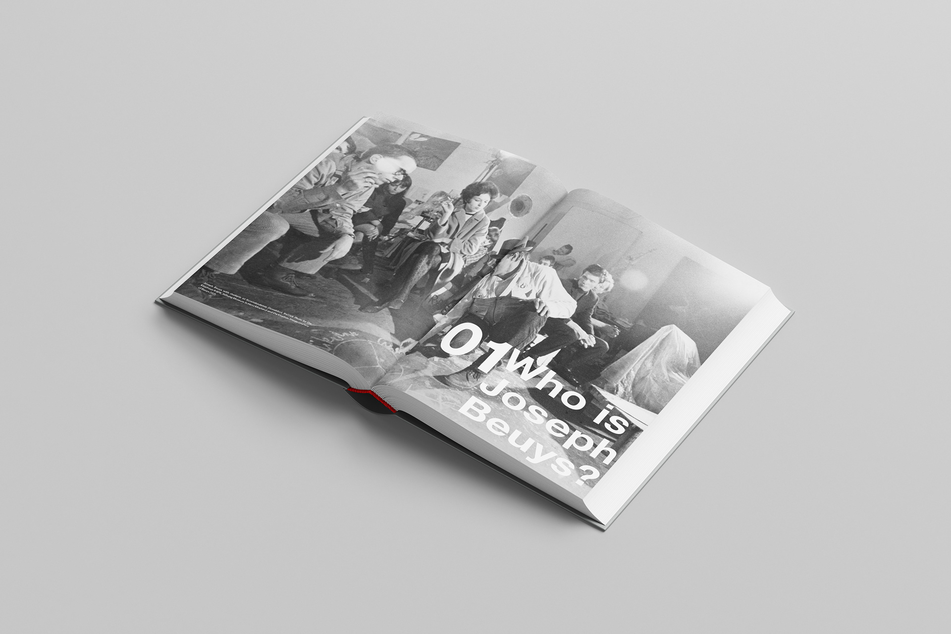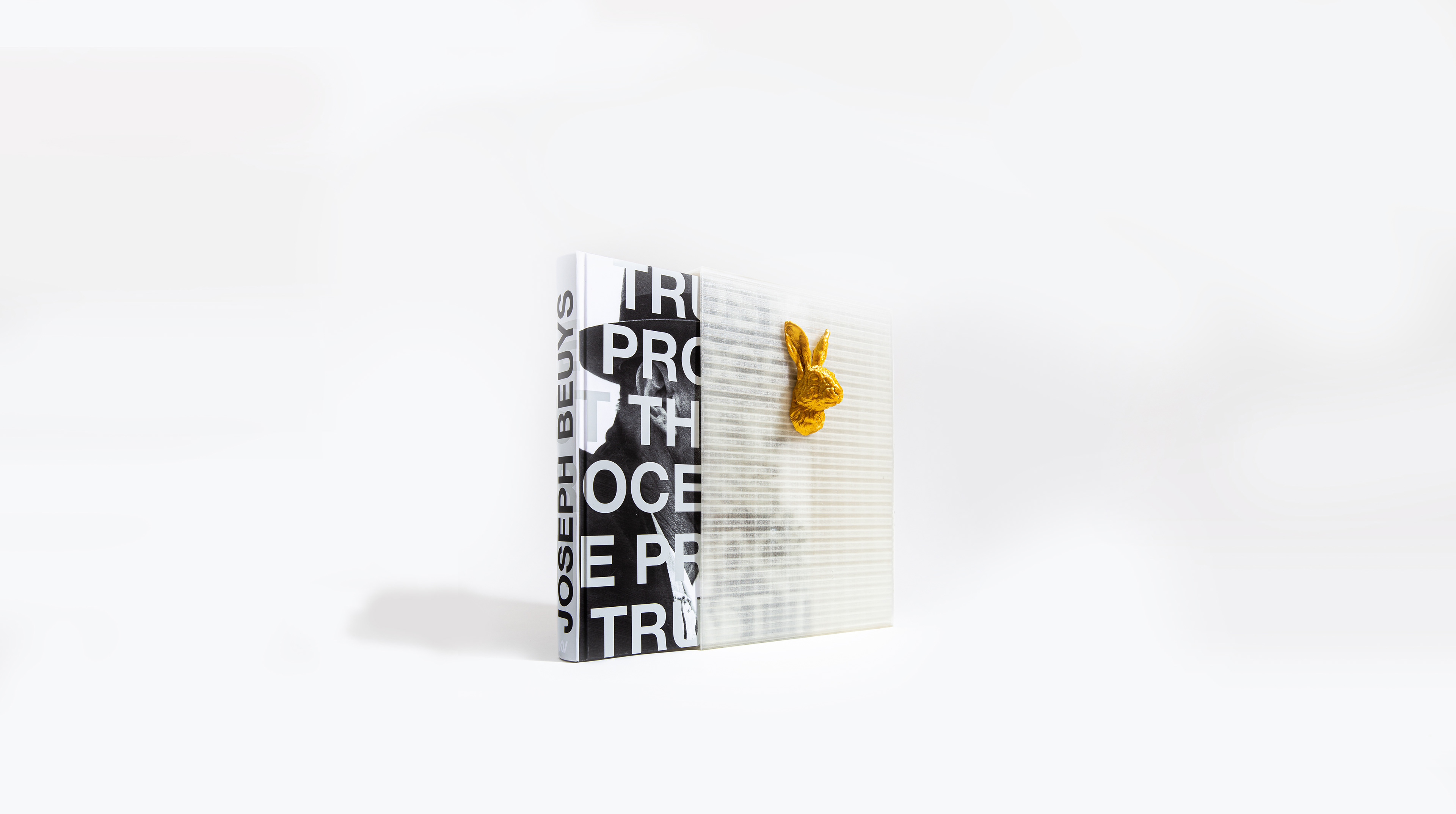 I was given the opportunity to create a coffee table book that represents and explains the biography of the artist Joseph Beuys. I designed the page layouts and cover, which I then printed and had a bookbinder fit on an old book. The book cover and gold head of a hare were 3D printed with the help of a friend in engineering and 3D modeling. This design is for a user to not only read about Joseph, but also notice his persona within the layout. He was peculiar but inviting, which I believed was represented perfectly by the animal's head.